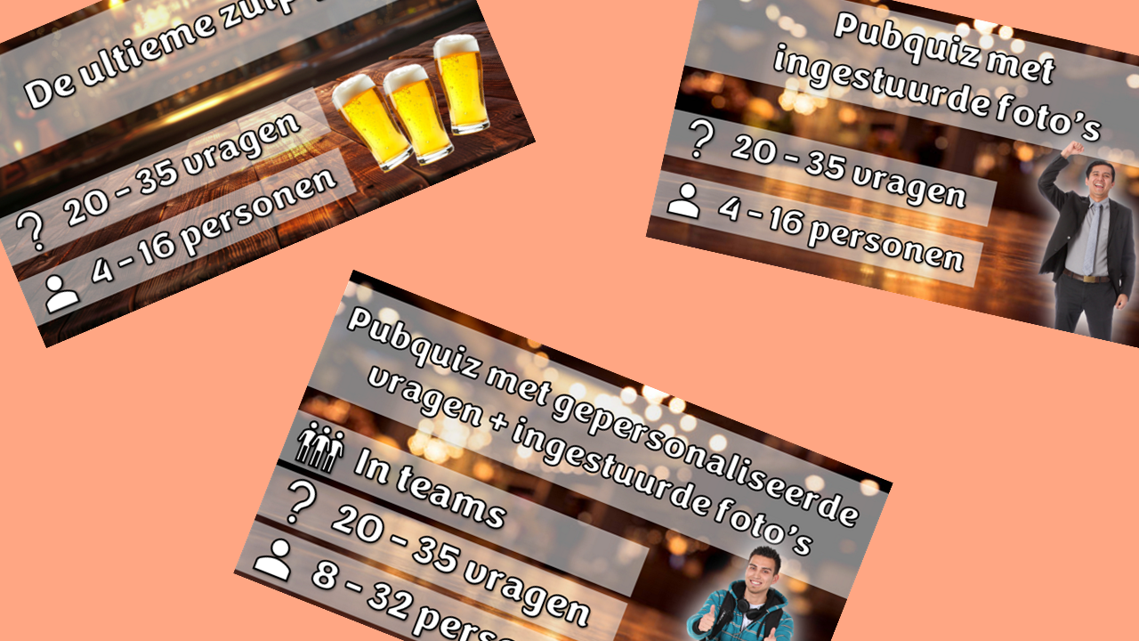 Wij specialiseren onszelf in het bezorgen van een onvergetelijke avond met de beste Pubquiz. Met de diversiteit en de pure humor die wij verwerken in onze pubquizen scheiden wij onszelf van andere pubquiz-makers.